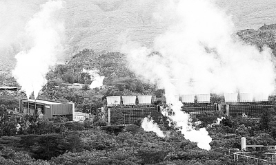 圖為肯尼亞裂谷省的歐卡瑞地?zé)犭姀S。該地?zé)犭姀S二期擴(kuò)建工程目前已經(jīng)完成了70%的地?zé)峋@探工作,新的地?zé)峋A(yù)計(jì)將在兩年內(nèi)產(chǎn)生280兆瓦的電能?夏醽啅1981年開始開發(fā)地?zé)豳Y源以來,共鉆探了33口地?zé)峋。由于地(zé)豳Y源不受氣候因素影響,發(fā)電價(jià)格不受國際原油價(jià)格波動(dòng)的干擾,地?zé)岚l(fā)電是肯尼亞目前最便宜的發(fā)電方式。肯尼亞地?zé)岚l(fā)電資源非常豐富,共有7000兆瓦的地?zé)岚l(fā)電潛力。