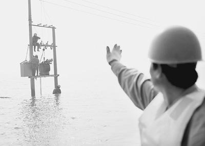 “前兩天還在打點(diǎn)滴呢!爆F(xiàn)場施工負(fù)責(zé)人符建華心痛地看著陶浙錦。“11月下旬要完工,已經(jīng)干了兩個(gè)多月了,天天起早摸黑。有一天因?yàn)橼s工期,收工晚了些,結(jié)果趕上大潮汛,我們只能像鳥一樣抱著線桿,等待救援。當(dāng)時(shí)抬頭是黑乎乎的天,低頭是洶涌的潮水,現(xiàn)在想起真有點(diǎn)后怕!闭f起工程的艱苦,符建華深有感觸。
