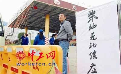 由于柴油荒,重慶市不少貨運車輛都“被休息”。福州來的長途車師傅汪青,在江北盤溪的時候,車上已經(jīng)顯示油見底了,他在江北接連跑了三個加油站,都沒有加到油。最后聽說三溪口加油站有油,但是,他的車已經(jīng)啟動不了了,他被迫把車停在加油站,自己提著油壺,打車前去買油。結(jié)果好說歹說,也只買到了100元錢的油。
