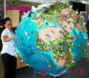 11月30日,一名與會代表在觀察坎昆氣候大會會議中心的一個地球模型。