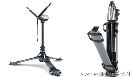 上面所展示的是一部風(fēng)力發(fā)電機,但與同類產(chǎn)品的區(qū)別是——它是便攜性的,也就是說無論到哪里都可以用。這款風(fēng)力發(fā)電機雖然還只是處于設(shè)計階段,但是如此巧妙的設(shè)計理念已經(jīng)足以讓人感興趣。