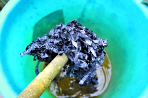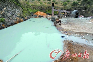 在靠山腳下的一排爐子前面,一個年輕小伙正在焚燒用黑塑料袋裝著的東西?吹接浾呱锨,一位操有粵西口音、年齡在40歲上下的老板模樣的人湊上前來。“你這是煉金嗎?”“不是煉金,搞點(diǎn)電鍍廠的廢水。”記者看到有一個盛有金黃色液體的玻璃器皿放在一個鐵盆上。在雨棚一側(cè),還堆有幾十個藍(lán)、黑色的塑料桶,桶口均用塑料袋堵住后,再用蓋子蓋上的。