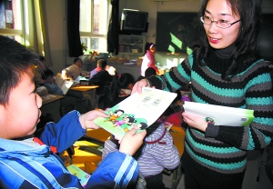 接過循環(huán)使用的課本,學(xué)生劉夢說:“翻開哥哥姐姐們用過的課本非常新,感到很親切,我會好好學(xué)習(xí)、好好愛護課本!毖h(huán)使用課本已經(jīng)成為豐臺五小的一個慣例,去年期末,老師將高年級使用完的課本收回來,到新學(xué)期發(fā)給新一學(xué)年的同學(xué)使用!斑@種做法不僅節(jié)約了資源,還培養(yǎng)了孩子們的節(jié)約、環(huán)保意識!痹搶W(xué)校負責(zé)德育教育的王老師說。