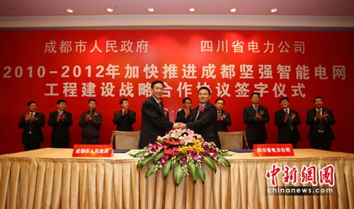 中新網(wǎng)成都4月26日電(記者劉忠俊)26日上午,國家電網(wǎng)四川省電力公司與成都市簽訂《關(guān)于2010-2012年加快推進成都堅強智能電網(wǎng)工程建設(shè)戰(zhàn)略合作協(xié)議》。協(xié)議規(guī)定至2012年,成都將基本建成結(jié)構(gòu)合理、技術(shù)先進、運行靈活、安全可靠、經(jīng)濟高效、各電壓等級協(xié)調(diào)發(fā)展的堅強智能電網(wǎng),新(擴)建500千伏輸變電工程3項,新(擴)建220千伏輸變電工程24項,新(擴)建110千伏輸變電工程93項,預計三年投運變電容量約1600萬千伏安。