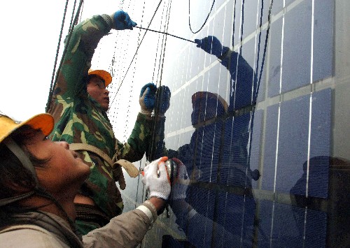太陽能方面,2009年中國光伏電池年產(chǎn)量約占全球產(chǎn)量的40%,連續(xù)三年居世界第一,為世界太陽能光伏發(fā)電作出了重要貢獻,通過國家能源局公開招標的甘肅敦煌10兆瓦光伏發(fā)電項目也正在建設(shè)之中。