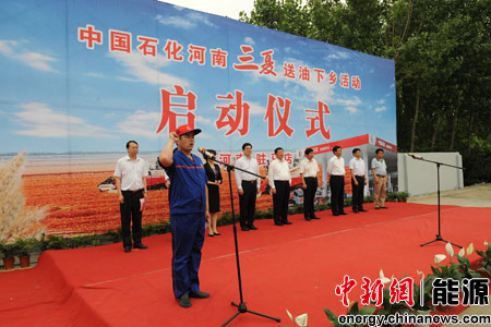 章建華說:“請農(nóng)民朋友放心,中國石化一定能以優(yōu)質(zhì)的油品和優(yōu)良的服務(wù)承擔(dān)起保障三夏供油的光榮使命,以實際行動為國家搞好夏收、夏種、夏管,實現(xiàn)夏糧豐收,為廣大農(nóng)民朋友增加收入做出應(yīng)有的貢獻!