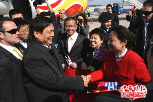 當(dāng)?shù)貢r間29日下午14時45分(北京時間晚上20時45分),中共中央政治局委員、北京市委書記、北京奧組委主席劉淇率北京奧運圣火交接儀式代表團(tuán)乘坐北京2008奧林匹克火炬接力包機(jī)“和諧之旅”號抵達(dá)雅典,出席于30日下午在這里舉行的北京奧運會圣火交接儀式。(中希時報 汪鵬攝)