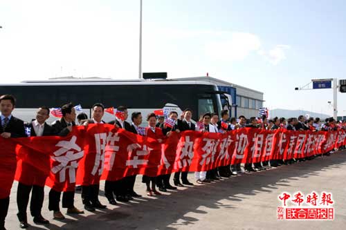 3月29日希臘華人華僑于雅典機場迎接北京奧運圣火專機