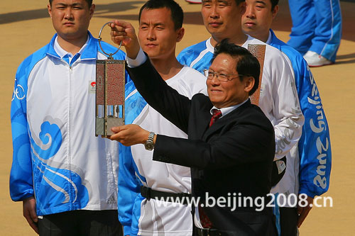 在希臘總統(tǒng)帕普利亞斯和以北京奧委會(huì)主席劉淇領(lǐng)銜的中方貴賓相繼入場(chǎng)后,下午三時(shí),奧運(yùn)圣火交接儀式在莊嚴(yán)、隆重的氛圍中拉開帷幕。