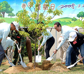 植樹日的主禮嘉賓,包括中央人民政府駐香港特別行政區(qū)聯(lián)絡(luò)辦公室主任高祀仁、中國外交部駐香港特別行政區(qū)特派員呂新華及香港政務(wù)司司長唐英年。