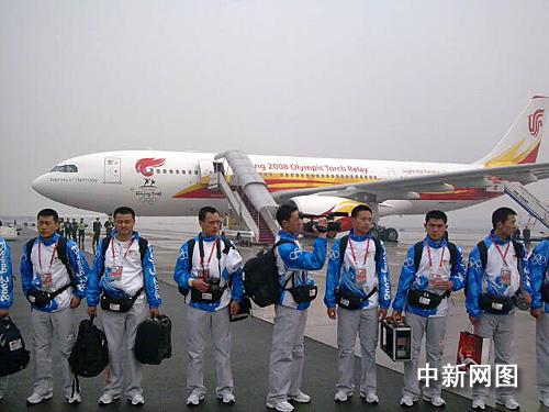 圖:北京奧運(yùn)圣火包機(jī)啟程前往阿拉木圖傳遞