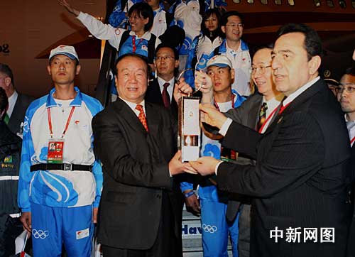 中新網(wǎng)4月3日電 當?shù)貢r間4月3日凌晨0時(北京時間3日凌晨5時)許,載有北京奧運圣火的“奧運圣火”號專機抵達土耳其最大城市伊斯坦布爾的國際機場。飛機降落約10分鐘后,北京奧組委執(zhí)行副主席蔣效愚手持圣火燈走下舷梯,宣布北京奧運圣火正式進入歐亞匯合點伊斯坦布爾。