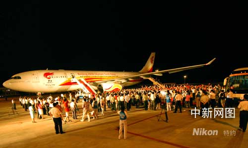 奧運(yùn)圣火號(hào)飛機(jī)抵達(dá)三亞