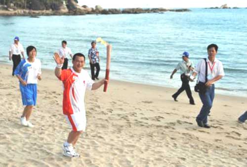 綜合新華社電奧運(yùn)圣火在三亞的傳遞路線被北京奧組委認(rèn)定“極具特色”。為體現(xiàn)三亞的椰林、海灘風(fēng)光,三亞的火炬?zhèn)鬟f方式除了長(zhǎng)跑外,還采用了沙灘跑步、三人自行車等特殊傳遞方式。