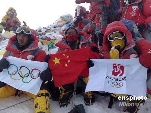 組圖:北京奧運圣火成功登上珠峰