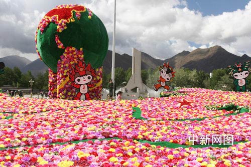 圣火耀珠峰 拉薩歡騰 廣場噴泉破例白天開放(圖)(2)