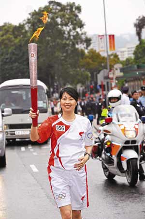 已懷孕7個半月的李穎詩,曾連續(xù)10年成為香港游泳項目的紀(jì)錄保持者,1994年更在廣島亞運中勇奪銀牌。運動員生涯過去了,她繼續(xù)為香港體育發(fā)展努力,現(xiàn)擔(dān)任運動推廣工作;她笑指去年報名參加火炬手甄選時還未懷孕,當(dāng)獲通知擔(dān)任第56棒火炬手時,她既感興奮,也擔(dān)心身體未能應(yīng)付,幸好獲醫(yī)生及家人的支持,終鼓起勇氣與女兒共度傳送圣火的歷史時刻,“傳送時女兒也在腹中團(tuán)團(tuán)轉(zhuǎn),手仔腳仔也在動,她陪著我一同完成了圣火傳送的任務(wù)”。