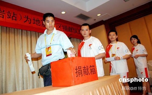 圖:福建龍巖火炬手為地震災(zāi)區(qū)民眾捐款