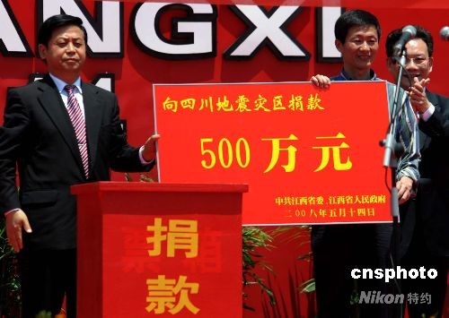 圖:江西向四川災(zāi)區(qū)捐款500萬元