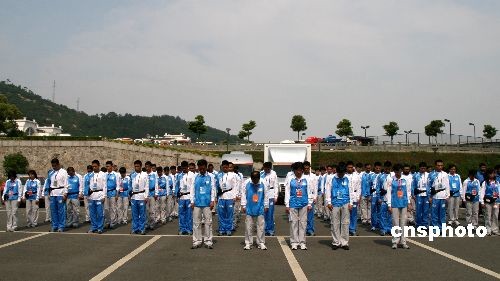 5月19日14時(shí)28分,北京奧運(yùn)會火炬接力運(yùn)行團(tuán)隊(duì)的所有成員,為四川汶川大地震遇難者默哀三分鐘,火炬運(yùn)行車隊(duì)鳴笛致哀。 中新社發(fā) 周兆軍 攝