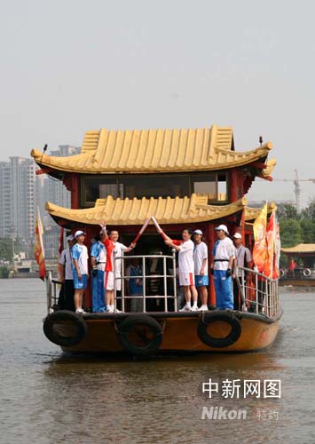 圖:奧運(yùn)圣火在嘉興南湖進(jìn)行水上傳遞