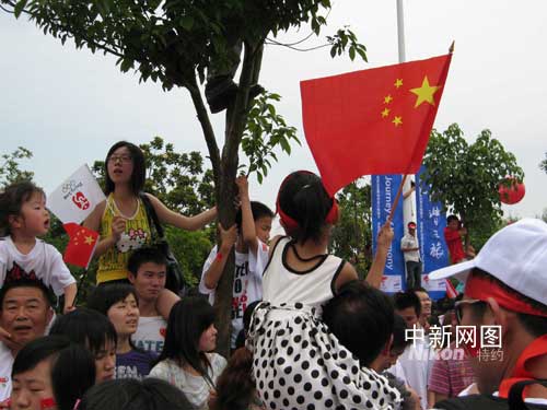 組圖:奧運(yùn)圣火在武漢傳遞 市民傾城迎接(5)