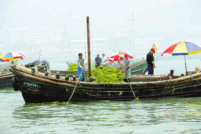 在青島海邊,一種往年毫不惹人注意的海藻,在今年5月以后,因大規(guī)模侵犯奧帆賽場(chǎng)地而名聲大振,專(zhuān)家稱(chēng)這種海藻為“滸苔”。