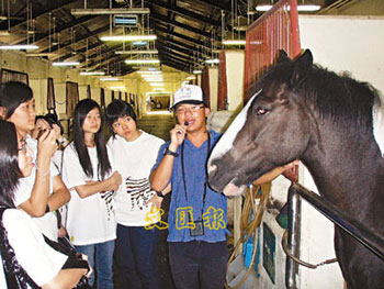 在參觀馬房時(shí),30多名中學(xué)生都好奇地東張西望,大部分都是第一次跟馬匹如此近距離地親密接觸,女生都忍不住鼓起勇氣摸摸馬頭馬頸,“它好溫馴!”張琪琪一邊撫摸馬匹,一邊開心地說(shuō)。