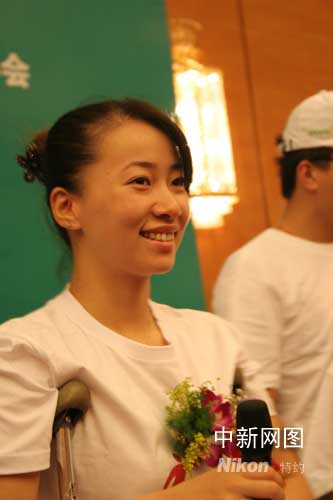 中新網(wǎng)北京七月十三日電 在北京申奧成功七周年、奧運倒計時26天之際,“我們的奧運——微笑中國2008全民健康志愿者行動”今天上午在北京人民大會堂正式啟動。作為該活動的健康形象大使,被譽為“中國最美麗火炬手”的殘疾人女火炬手金晶帶領志愿者代表們舉起右手宣誓:微笑面對世界,共同傳承奧運健康財富,讓中華民族的健康圣火永不熄滅。