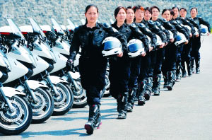 就是在這種情況下,從五月至今,魔鬼訓練終于有了收獲,“警花”們駕駛技能提高程度之快,令男隊員們也刮目相看。如今,她們一樣能夠熟練地駕駛摩托車,編隊行進,自如穿樁,應對路面各種復雜狀況。女警們告訴記者,現(xiàn)在她們已經(jīng)差不多達到了“人車合一”的境界。男女隊在“緊急制動”科目的一次挑戰(zhàn)賽中,居然是女隊“完勝”——估計前提是男隊員謙讓了一點。