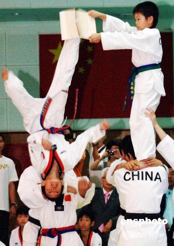 圖:中國(guó)跆拳道小運(yùn)動(dòng)員精彩獻(xiàn)技