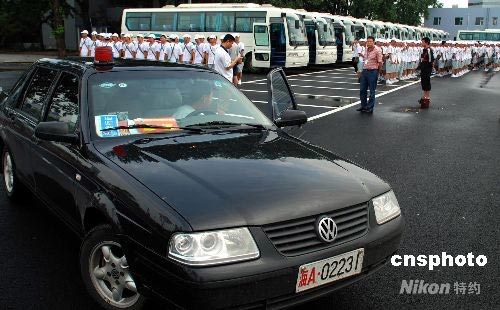 7月15日早上,除一輛懸掛海軍牌照的開路轎車外,其它進(jìn)入鳥巢的車輛均摘掉了車牌。北京奧組委采取嚴(yán)格的保密措施防止開幕式節(jié)目內(nèi)容泄露。中新社發(fā) 楊慧峰 攝