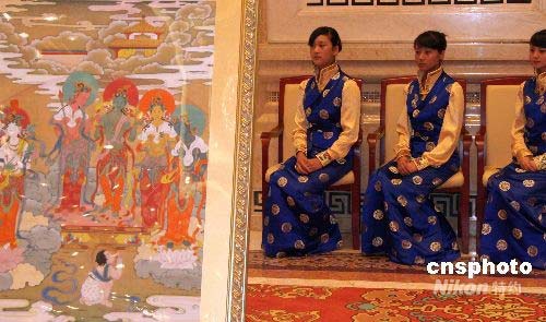 7月15日下午,中國西藏文化保護與發(fā)展協(xié)會、四川省甘孜藏族自治州政府聯(lián)合在北京舉行新聞發(fā)布會宣布,今年7月30日至8月20日將在北京民族文化宮舉辦中國民族藏文化經(jīng)典藝術(shù)《格薩爾千幅唐卡》展,該展覽已被北京奧組委列為北京奧運文化節(jié)的重點文化項目。北京首展后,《格薩爾千幅唐卡》還將在中國臺港澳地區(qū)和歐洲、北美等地進行長期的全球巡展。中新社發(fā) 孫自法 攝