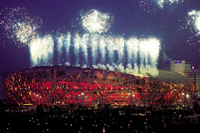 中新網(wǎng)北京7月17日電 綜合報(bào)道,16日晚,北京奧運(yùn)會(huì)開幕式在國(guó)家體育場(chǎng)“鳥巢”舉行了帶妝彩排!傍B巢”夜景照明系統(tǒng)首次全亮燈,并首次在“鳥巢”上空燃放禮花。