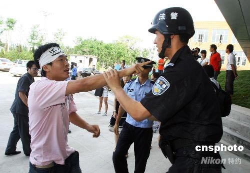 7月17日,剛剛遷到新址的奧運(yùn)村法庭,舉行了一場(chǎng)專門針對(duì)該法庭可能遇到的突發(fā)事件的奧運(yùn)安保演練,以提高對(duì)突發(fā)事件的處置能力。圖為北京奧運(yùn)村法庭發(fā)生“突發(fā)事件”,朝陽法院法警中隊(duì)迅速趕到現(xiàn)場(chǎng)將鬧事“當(dāng)事人”控制。中新社發(fā) 劉新 攝
