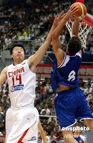 圖:中國隊勝塞爾維亞隊 王郅治得分冠全場