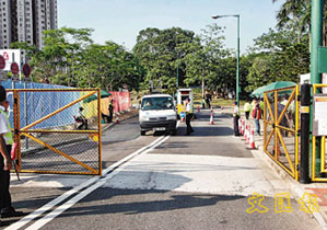 在沙田奧運(yùn)馬術(shù)場地門外,有保安員站崗,出入人士都需要出示證件,附近通道亦有警員帶同警犬巡邏。馬術(shù)比賽場地外的單車徑都已封閉,鐵欄上鎖。城門河道上,最近比賽場地的支流以及行車橋墩下面,也擺放了大型浮桶,防止可疑船只進(jìn)入。警方聯(lián)同多個(gè)部門會(huì)于18日傍晚舉行生化事故演習(xí),為馬術(shù)比賽的保安工作做好準(zhǔn)備。