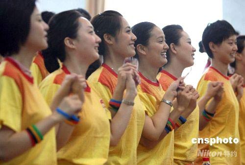 七月十八日,中國國際航空客艙服務部正式成北京奧運會、殘奧會文明觀眾拉拉隊。屆時這支由客艙服務員組成的拉拉隊必將成為一道靚麗的風景線。 中新社發(fā) 任海霞 攝