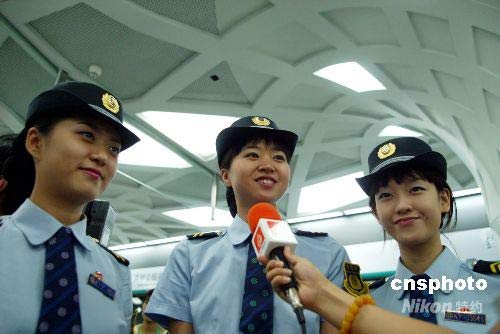 美女乘務員服務北京地鐵。中新社發(fā) 富田 攝