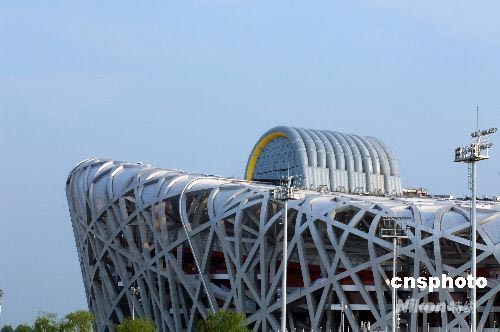 近日,“鳥巢”東北角隆起的“大包”頗為引人關(guān)注,這個“大包”顏色與鳥巢顏色接近,呈圓拱狀,在圓拱形的覆蓋物外,還有一圈黃色裝飾,認真觀察發(fā)現(xiàn)這個“大包”不過是一層“偽裝”,透過氣孔的覆蓋物可以看到裝置中間部分是一個陰影。這個“大包”屹立于鳥巢之上,成為鳥巢最為醒目的標志,因此有人懷疑這是北京奧運會主火炬臺。中新社發(fā) 王東明 攝