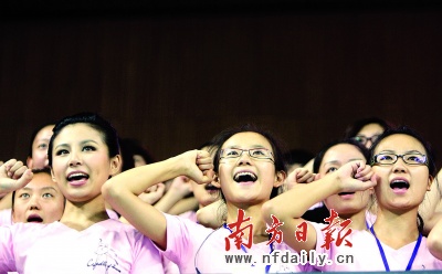 參加奧運頒獎禮儀彩排的志愿者宣誓。王亮張由瓊攝