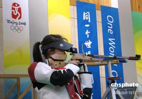 7月21日上午8時30分,也就是8月9日奧運(yùn)女子10米氣步槍比賽的時間,中國隊在此項(xiàng)目上爭金雙保險之一的趙穎慧,持槍站在奧運(yùn)比賽場館10米館的射擊位上,真槍實(shí)彈模擬了一場奧運(yùn)首金爭奪戰(zhàn)。中新社發(fā) 魏群 攝