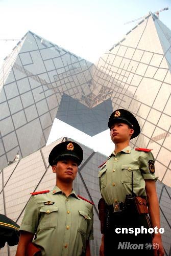 7月23日,北京武警正式進(jìn)駐中央電視臺(tái)新址,開(kāi)始擔(dān)負(fù)中央電視臺(tái)的安全保衛(wèi)任務(wù)。奧運(yùn)電視報(bào)道新聞中心近日將在中央電視臺(tái)新址開(kāi)始啟用。中新社發(fā) 楊慧峰 攝