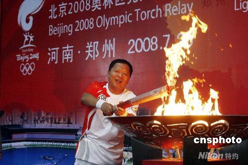 7月25日,中國工程院院士、中國信息與通信工程專家、解放軍信息工程大學(xué)校長鄔江興點燃圣火盆,奧運火炬在鄭州的傳遞正式結(jié)束。 中新社發(fā) 慎重 攝