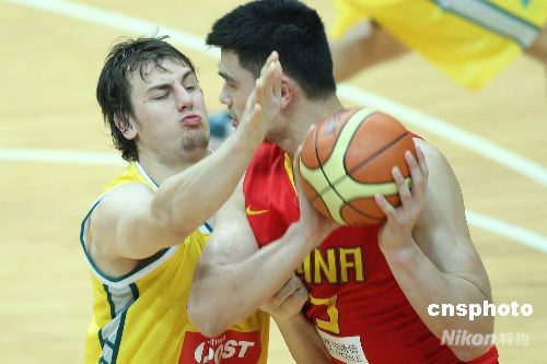 圖為姚明與對(duì)方博格特在場(chǎng)上上演“狀元對(duì)決”。中新社發(fā) 盛佳鵬 攝