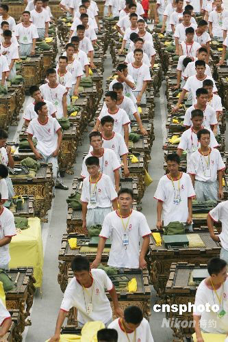 圖為參演人員攜帶各種道具來(lái)到鳥(niǎo)巢。 中新社發(fā) 武仲林 攝