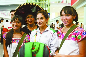 在北京首都機(jī)場(chǎng)接機(jī)大廳,戴著墨西哥傳統(tǒng)草帽頗顯怪異。昨日,3名墨西哥人就一直戴著能表明其身份的特殊帽子,等候本國(guó)運(yùn)動(dòng)員的到來(lái)。前來(lái)接機(jī)的攝影記者紛紛拿起相機(jī),對(duì)著他們猛拍。在這一小撮人群中,還有一對(duì)雙胞胎女孩,她們是中墨混血兒,不過(guò)不會(huì)一句漢語(yǔ)。妹妹拿著一面墨西哥國(guó)旗,她們的父親是中國(guó)人,他告訴記者,“這幾個(gè)人從墨西哥來(lái)北京看奧運(yùn),今天自發(fā)前來(lái)接機(jī)!