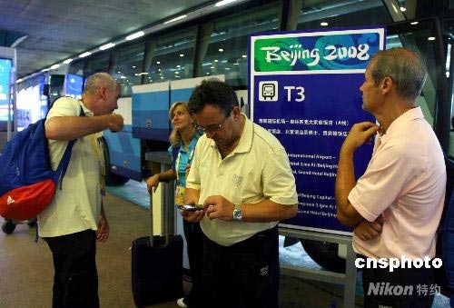 8月1日,參加北京奧運會的法國男子手球隊抵達北京首都機場。中新社發(fā) 劉新 攝