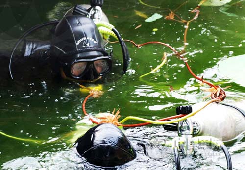 奧運安檢"蛙人"開展緊急清理"可疑物"演練(圖)