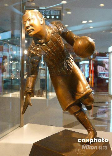 籃球造型兵馬俑雕塑。中新社發(fā) 樊甲山 攝